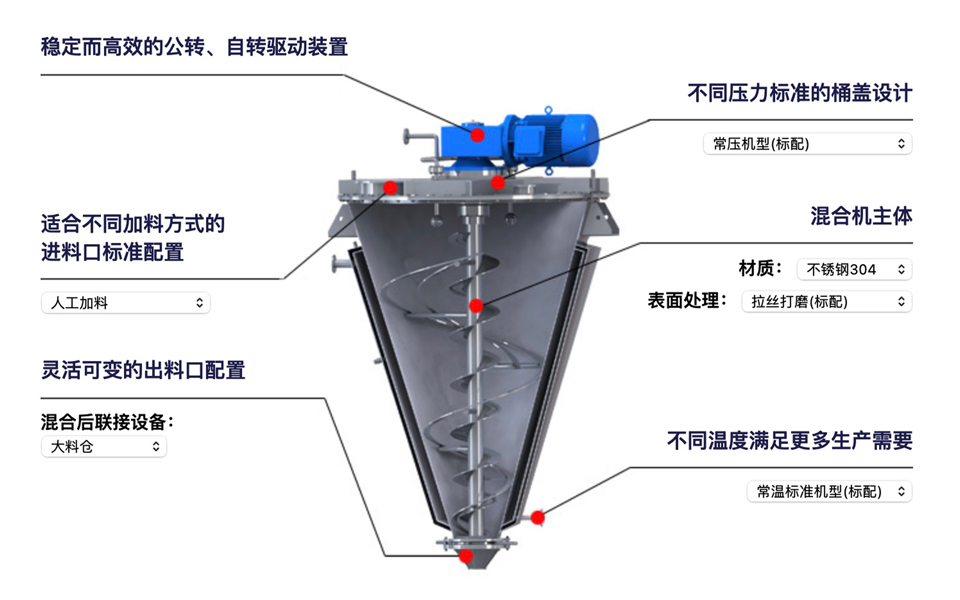 錐形螺帶混合機(jī)在包括化工、涂料、橡塑、食品、化肥、醫(yī)藥、農(nóng)(獸)藥飼料、耐火材料、建材、干粉砂漿、冶金、煉油...
