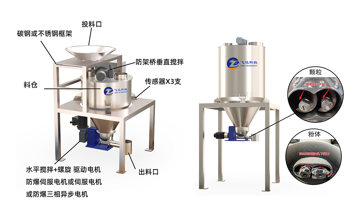 可根據(jù)給料量和存儲量定制;失重秤料倉可實現(xiàn)自動破包無塵投料。