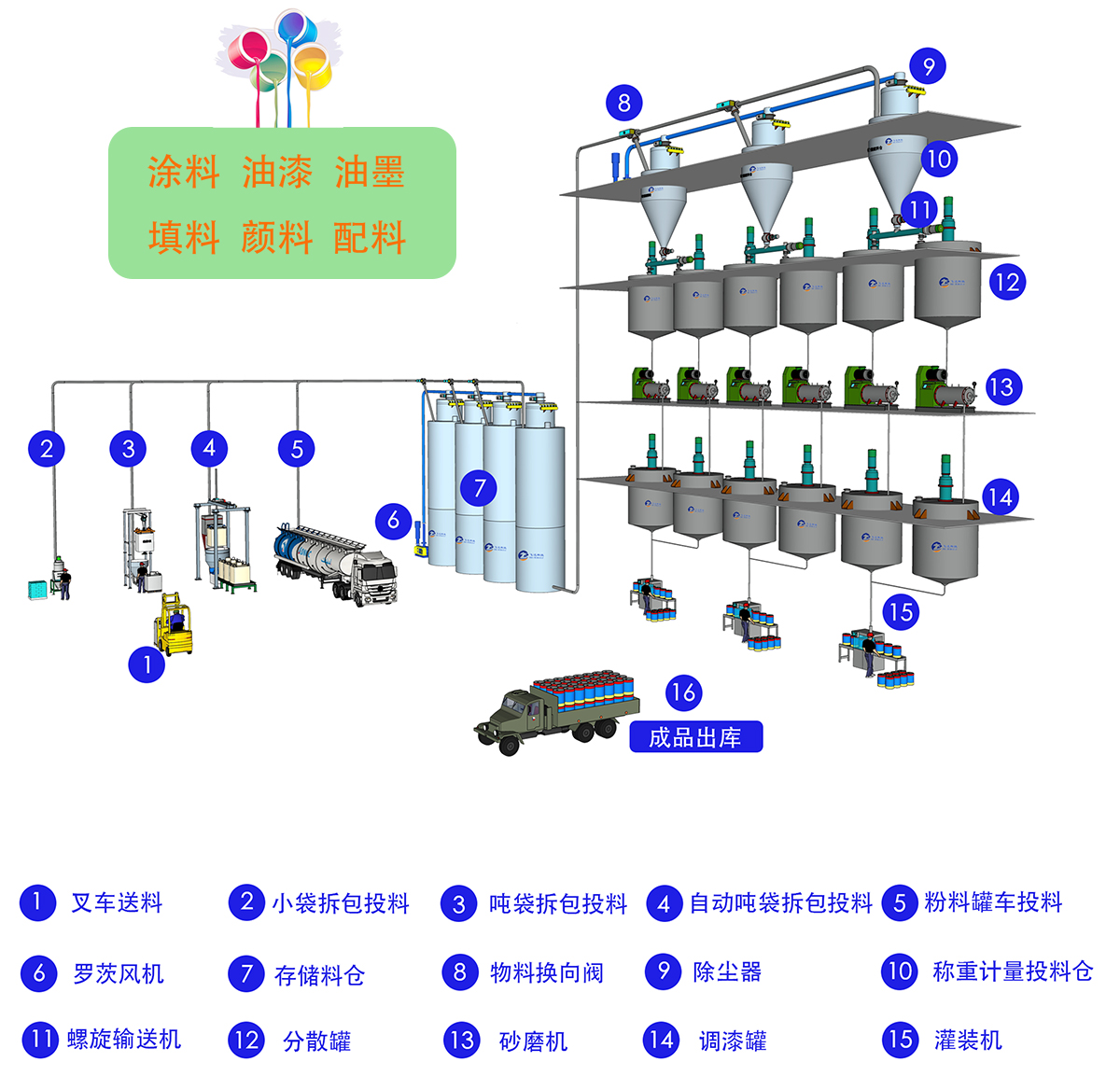 該系統是針對涂料行業研發的自動化配料輸送系統。系統配備了上位機管理